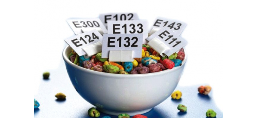 Tartrazina E-102: Este colorante pertenece a la familia de los colorantes azoicos, obtenidos de derivados del petróleo, durante un tiempo se relacionó con la hiperactividad infantil,aunque luego se intentó desmentir el parlamento europeo solicitó que se advirtiese de su presencia en las etiquetas de los alimentos.